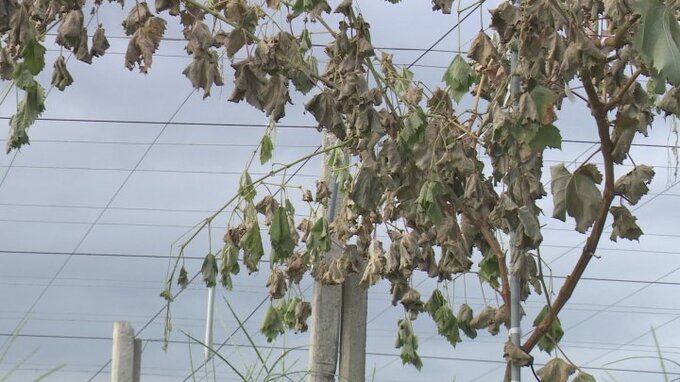 畑でブドウを栽培していた農家で50歳代の男性によると、畑の所有者が、16日午前7時頃に確認して被害に気付いた。木にはのこぎりで切られたような跡があり、葉が枯れていたという。