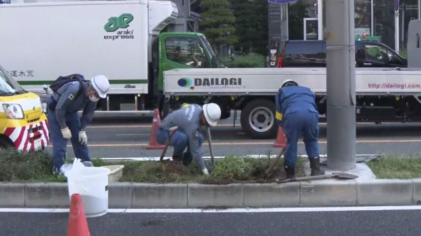 撮影しようと人が集まって事故になることなどを避けるため、大阪市は安全な場所に植え替えるとして、16日、根ごと掘り出す作業を行いました。