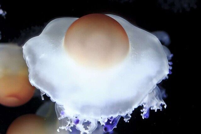 よく見れば、「目玉焼き」の下に紫や透明の触手のようなものがあるのがわかるが......何も知らずに見せられたらまず勘違いしてしまいそうな「目玉焼きクラゲ」に、ツイッター上ではこんな声が寄せられている。